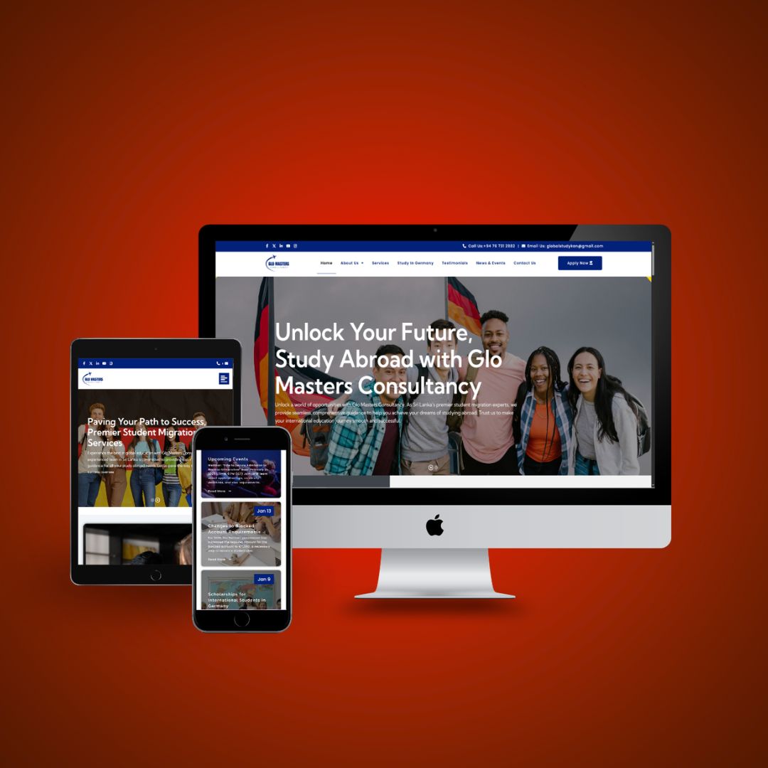 Project overview Glo Masters Consultancy is a premier student migration consultancy in Sri Lanka, dedicated to helping students navigate the complexities of studying abroad. The website serves as a comprehensive guide, offering detailed information about top universities, visa requirements, accommodation options, and other essential services for