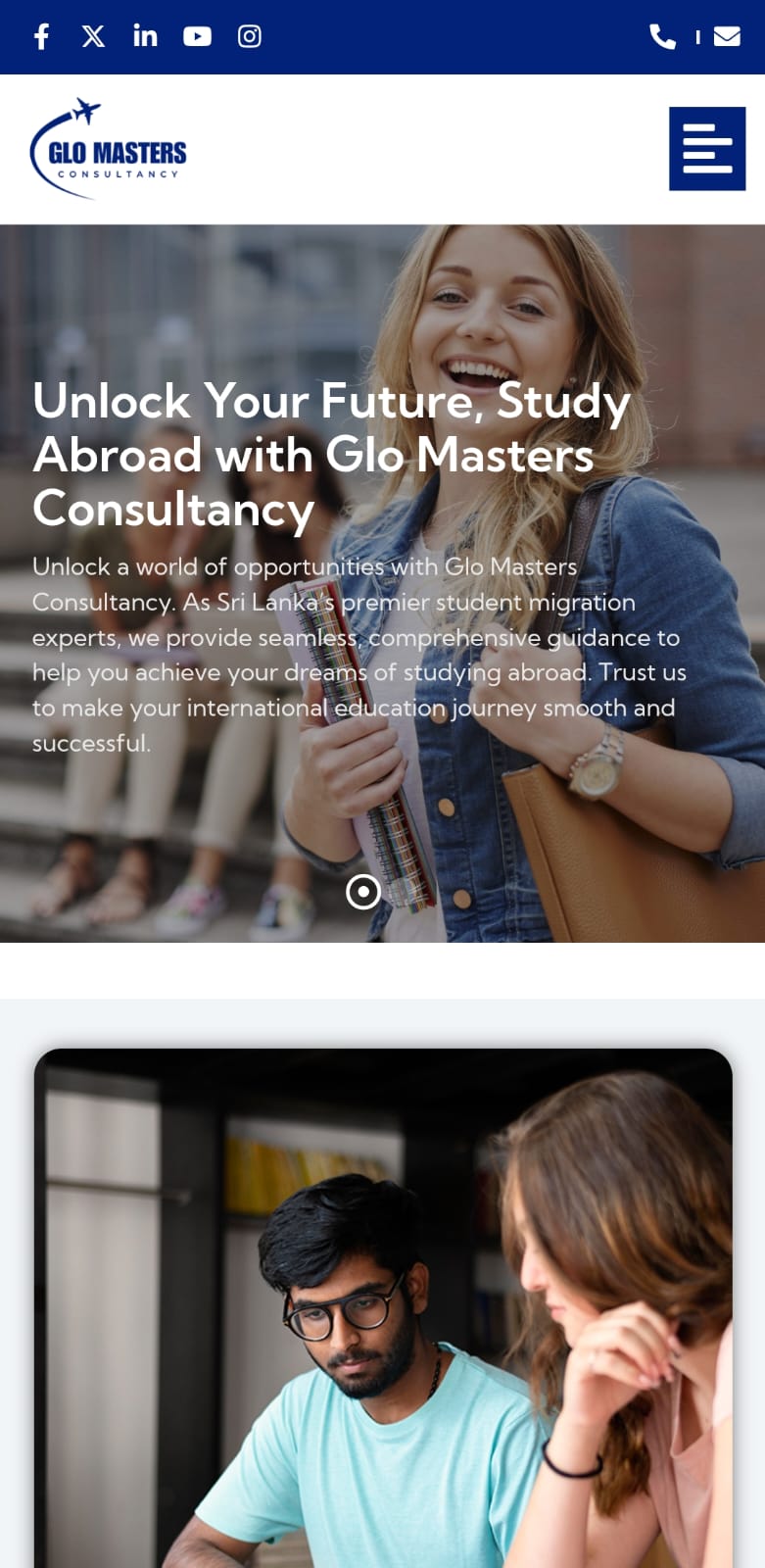 Glo Masters Consultancy is a premier student migration consultancy in Sri Lanka, dedicated to helping students navigate the complexities of studying abroad. The website serves as a comprehensive guide, offering detailed information about top universities, visa requirements, accommodation options, and other essential services for international students. By providing personalized support tailored to individual needs, Glo Masters makes the journey of studying abroad easier and more accessible.